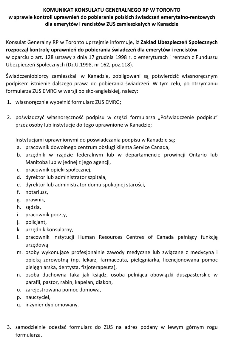 Komunikat Konsulatu Generalnego Rp W Toronto
