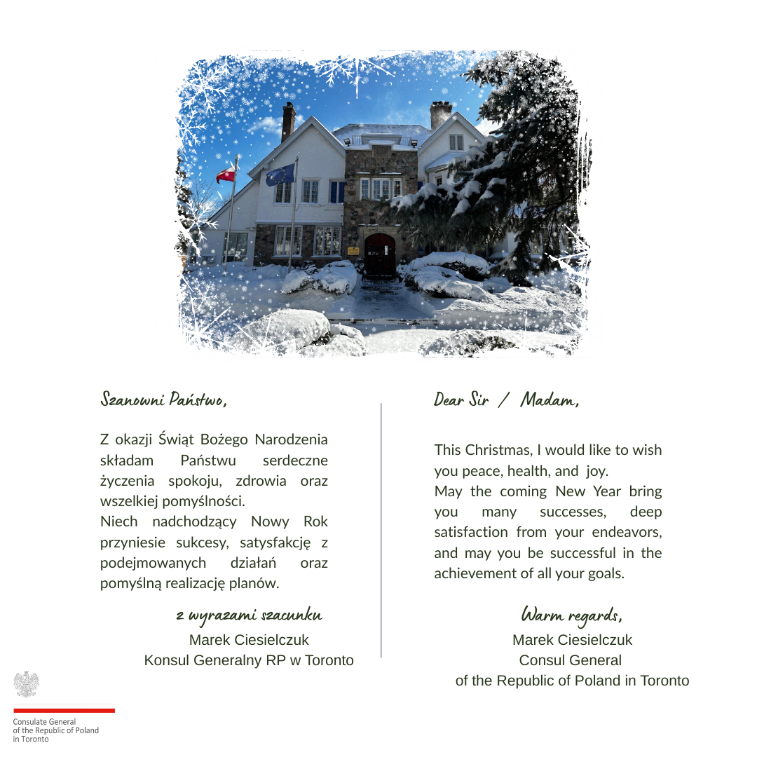 Świąteczne Życzenie z KG RP w Toronto / Season's greetings from the Consulate General of Poland in Toronto